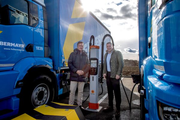 vlotte vkw und regionale Partner realisieren Trafostation und E-Lkw Ladepark bei Gebrüder Weiss.